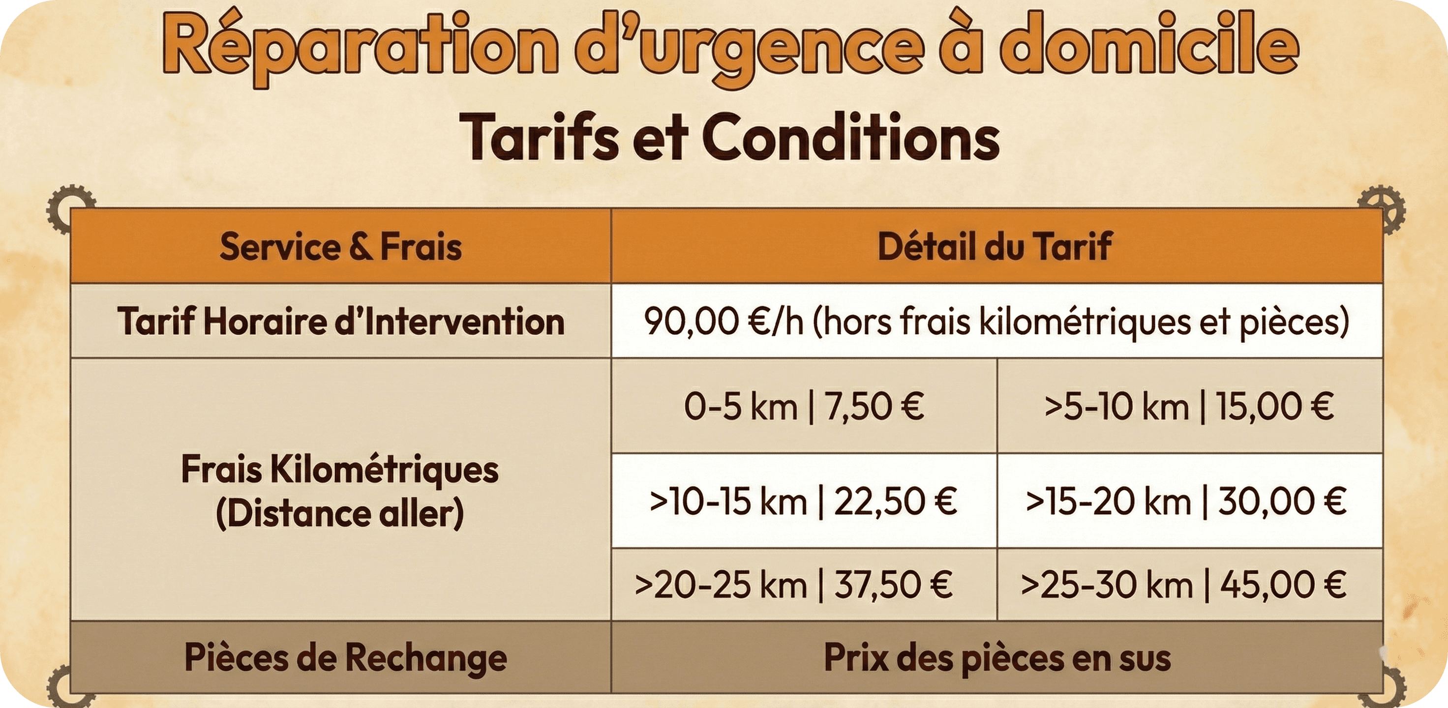 Nous faisons toujours notre maximum pour intervenir dans la journée ou le lendemain, afin que vous puissiez reprendre la route au plus vite.